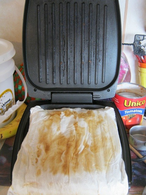 Poi è sufficiente aprire la griglia (non aspettare troppo a lungo, un'ora al massimo) e utilizzare gli stessi scottex per rimuovere lo sporco facilmente.
