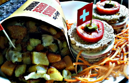 Mix di verdure con prezzemolo, gruviere e sandwich ai 5 cereali con sbrinz e prosciutto cotto