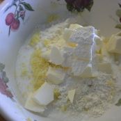 in una terrina mettete tutti gli ingredienti con il burro tagliato a pezzetti e impastate con le mani fino ad ottenere un'impasto liscio ed omogeneo, formate una palla e avvolgetela nella pellicola, ponete in frigorifero per almeno un'ora.