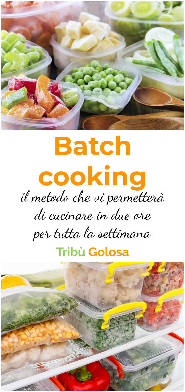 Il batch cooking è un metodo organizzativo che vi consentirà di impiegare solo due ore per preparare e cuocere cinque pasti, esattamente quelli che potete portare al lavoro per pranzo, ad esempio. Vi spieghiamo come funziona e come mettere in pratica questo metodo furbo per non perdere più un sacco di tempo in cucina, per mangiare sano e vario, senza cedere alla tentazione di comprare piatti pronti per mancanza di tempo.