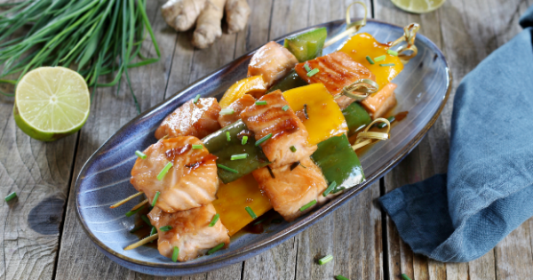 Una ricetta semplice per degli spiedini di salmone deliziosi dal sapore orientale: la presenza dello zenzero, della salsa di soia e del lime conferiscono a questo secondo piatto un delizioso sapore esotico.