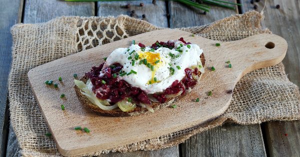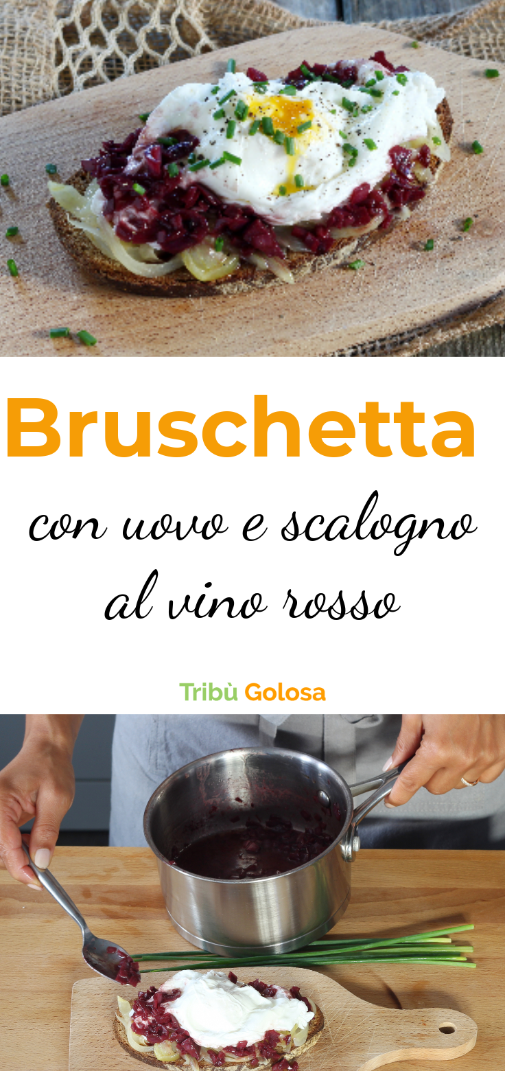 Bruschetta con uovo in salsa di scalogno al vino rosso