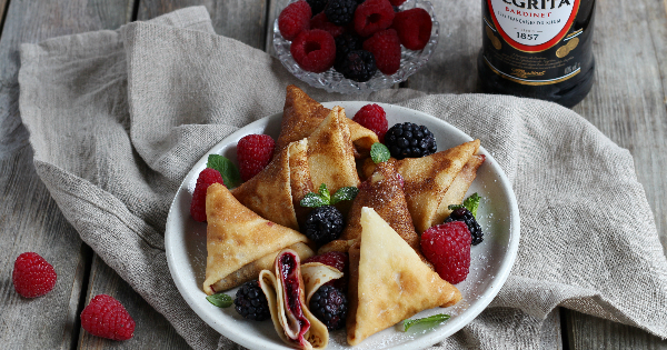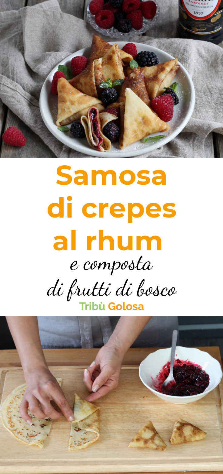 Samosa di crepes al rhum e composta di frutti di bosco