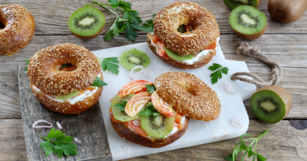 Bretzel-Bagel formaggio e kiwi, facili e dal gusto cosmopolita