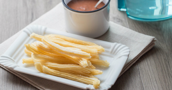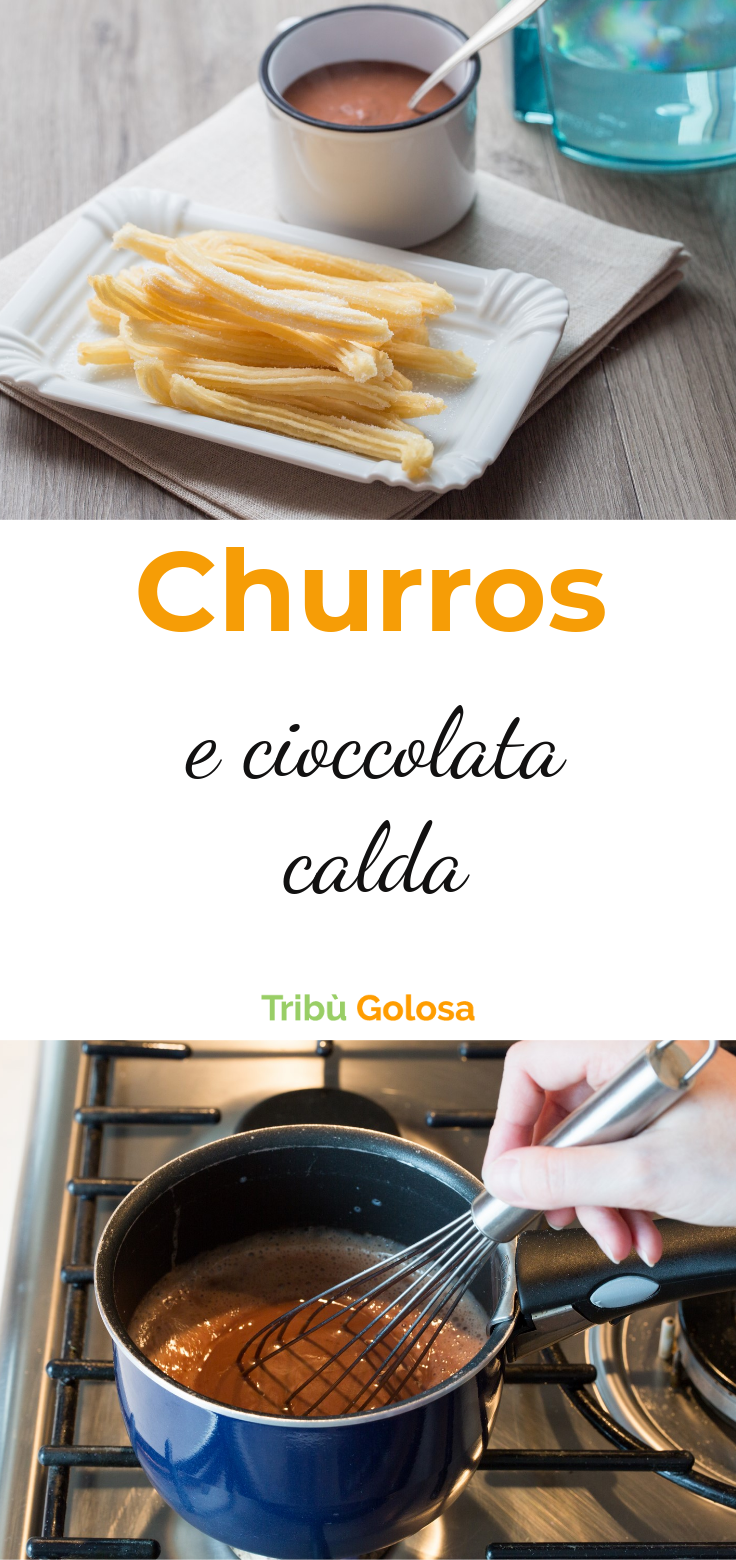 I churros sono deliziosi dolcetti fritti, tipici della cucina spagnola. Consistono in un impasto a base di farina, acqua e sale e vengono poi cotti in un bagno di frittura. Possono essere gustati cosparsi di zucchero a velo o immersi nella cioccolata calda fatta in casa.