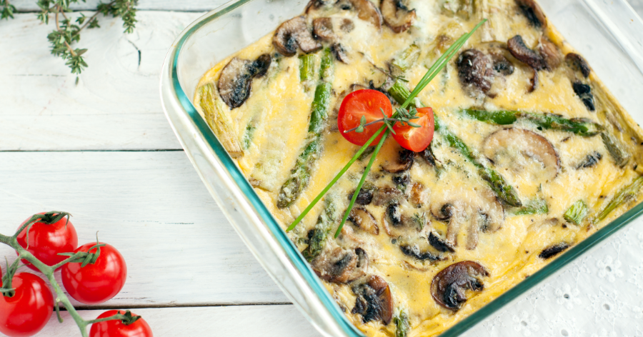 La frittata con asparagi e funghi cotta al forno, più leggera e saporita