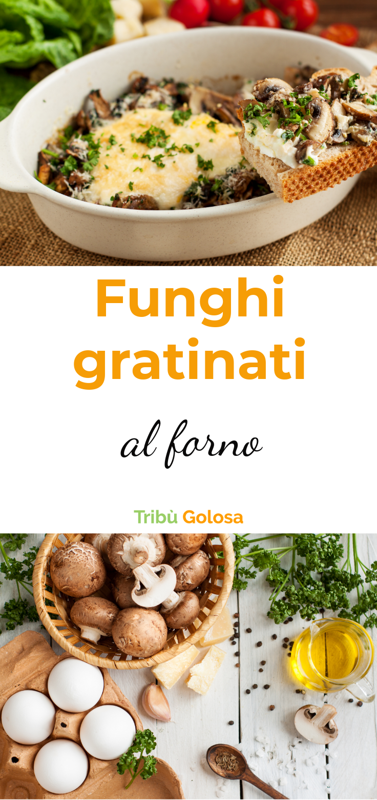 Questa ricetta è ottima per un contorno invernale ricco e saporito. I funghi vengono cotti precedentemente in padella, quindi vengono messi a gratinare in forno assieme a uova, Parmigiano grattugiato e prezzemolo. Ne risulta un contorno che puo' essere gustato anche come leggero secondo piatto.