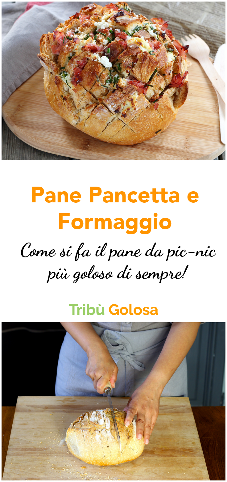Il "pane da pic-nic" è una pagnotta di pane farcita con formaggio e pancetta: una delizia da provare.