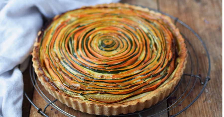 E' tornato il bel tempo, la primavera ha fatto capolino, e con essa anche la nostra voglia di preparare un buon piatto colorato e delizioso. Mettetevi all'opera e portate in tavola una torta salata con le verdure disposte a a spirale, colorata e bellissima!