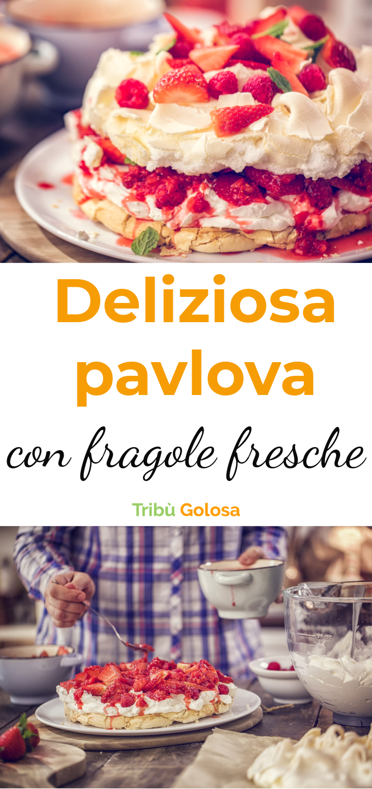 Deliziosa pavlova alle fragole fresche, friabile e con una golosa crema