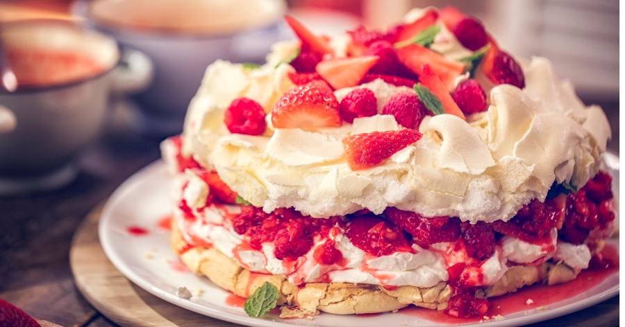 Perché non preparare una deliziosa pavlova con frutta fresca come delle ottime fragole di stagione? Questo dolce è originario dell'Australia o della Nuova Zelanda (i due stati si contendono la paternità), ed il nome è in onore di Anna Pavlova, considerata la miglior ballerina classica della storia. Le forme della meringa ricordano le movenze leggiadre ed i volteggi di Pavlova. Questo dolce è una pura delizia da provare, arricchito da fragole e lamponi.