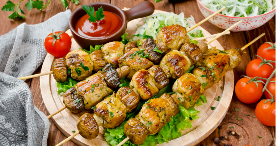 Spiedini di pollo e funghi, semplici e saporiti