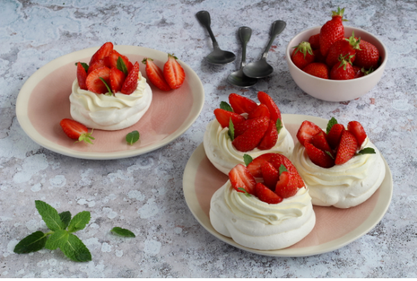 Pavlova è un dolce paradisiaco che prende il nome dalla ballerina russa Anna Pavlova. La nostra versione mini di questo dolce è leggera e delicata come la stella russa del balletto. Con fragole fresche, questo dolce è buonissimo, dal gusto sublime e per niente stucchevole.