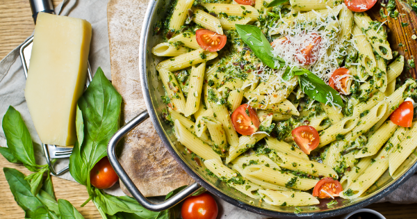 Penne rigate alla crema di spinaci e pomodorini