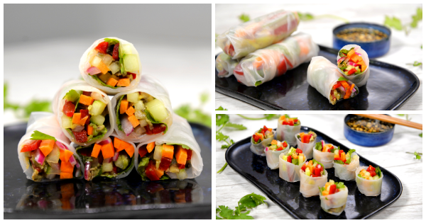 Involtini primavera avocado e verdure, uno snack esotico senza cottura