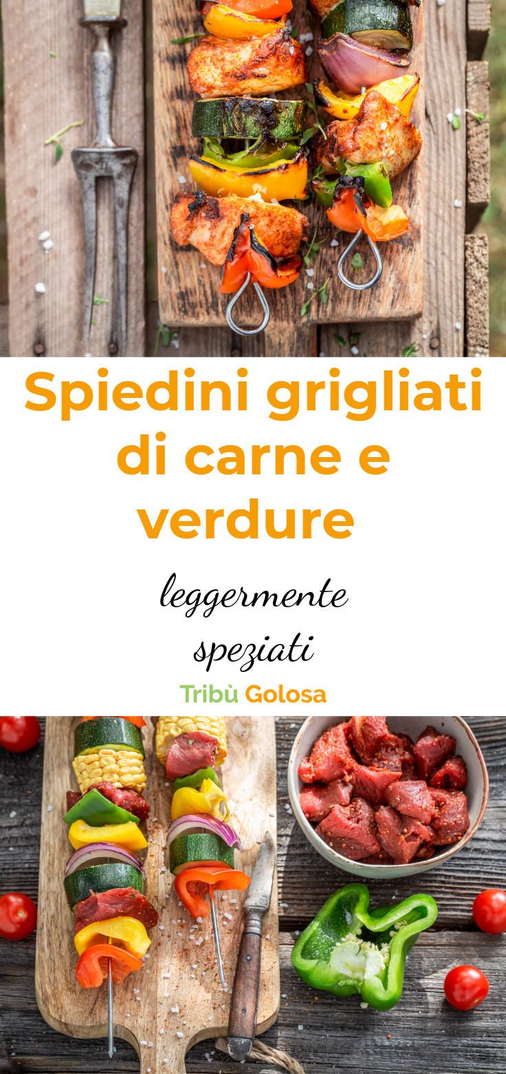 Spiedini grigliati con verdure e carne, per un pranzo estivo