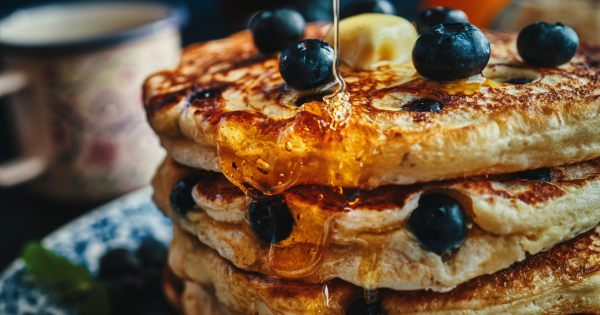 Prova questi pancakes sofficissimi e alti con mirtilli freschi