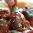Spennellate le polpette cotte con la salsa barbecue, quindi rimettetele in forno per 2 minuti. Spennellatele ancora una volta prima di servire.