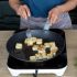 Versate un filo d'olio d'oliva in una padella antiaderente, fate scaldare e unite le patate sbucciate e tagliate a cubetti.