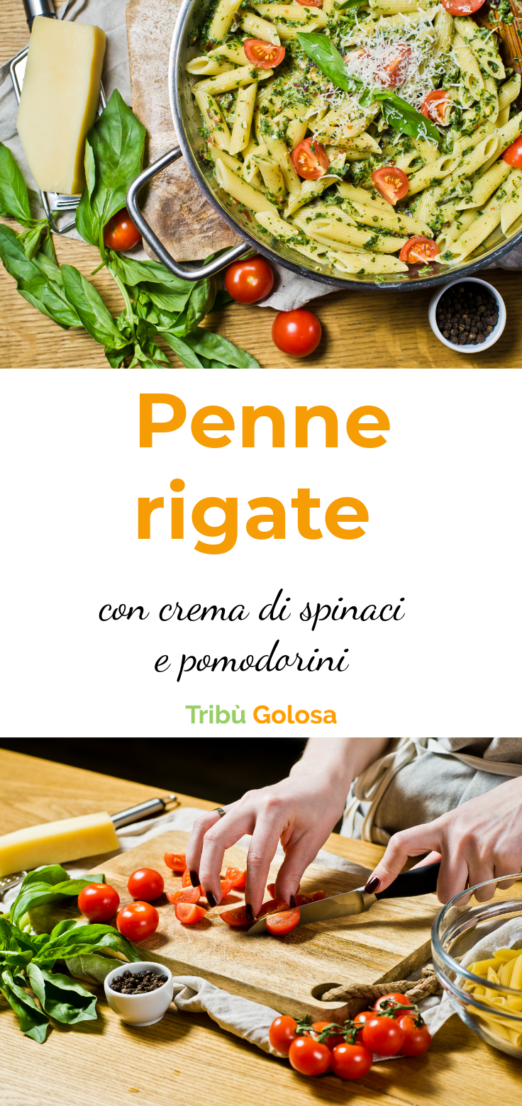 Un primo piatto dai freschi sapori, cremoso grazie agli spinaci, e fresco grazie ai pomodorini. La preparazione è molto semplice e non richiede molto tempo. Una pasta che piacerà a tutti, bambini compresi!