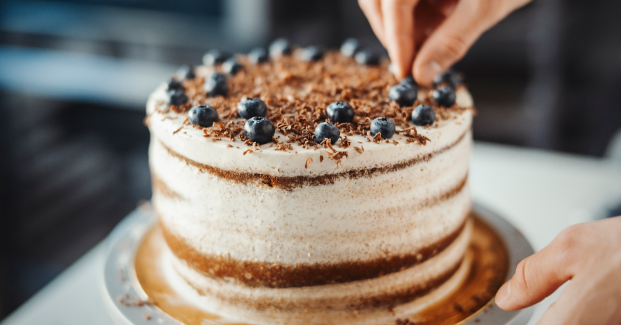 Torta deluxe a strati di mirtilli e scaglie di cioccolato