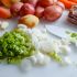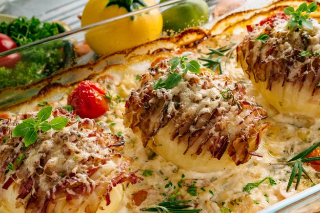 Queste patate sono deliziose ed ultra riconfortanti: ripiene di bacon e formaggio fuso sono ulteriormente arricchite con verdure fresche come carote, porri e sedano.