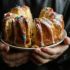 Spennellate con un tuorlo d'uovo. Infornate per 35 minuti a 180°. Spolverare con zucchero a velo e versate un po' di caramello liquido per decorare.