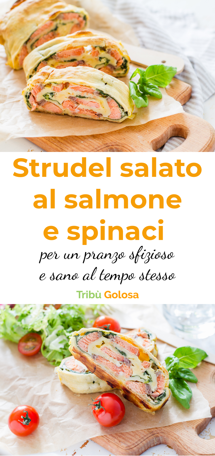 Non sapete cosa preparare per cena: avete voglia di qualcosa di sfizioso ed al tempo stesso sano? Questo strudel salato fa per voi: grazie al salmone fresco, che si sposa benissimo con il formaggio e gli spinaci. Si tratta di un ottimo piatto unico, da servire accompagnato da un'insalata.
