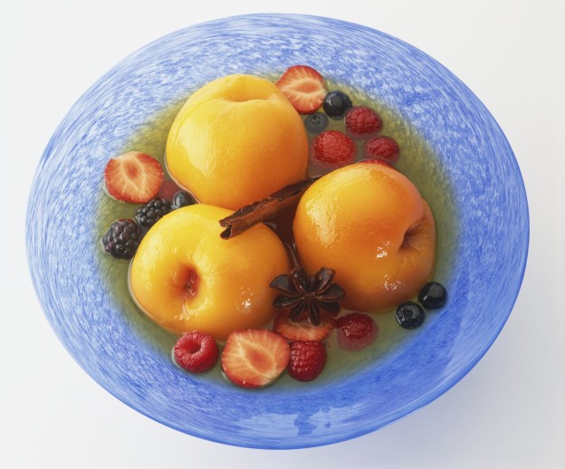 Prevedete una cena importante in casa vostra e temete che una classica macedonia di frutta non sia all’altezza? La nostra proposta saprà accontentare anche chi è abituato ai dessert raffinati del ristorante. Fate sbollentare per qualche minuto delle pesche intere di taglia preferibilmente piccola, precedentemente private della buccia. Quando saranno morbide, scolatele e mettetele da parte a raffreddare. Preparate una soluzione di acqua, zucchero e un pizzico di cannella. Lasciate scaldare sul fuoco, mescolando fino a che lo zucchero non si sarà sciolto. Quando lo sciroppo sarà freddo, trasferitelo in una ciotola con le pesche intere sbollentate, fragole a pezzetti, more e mirtilli.