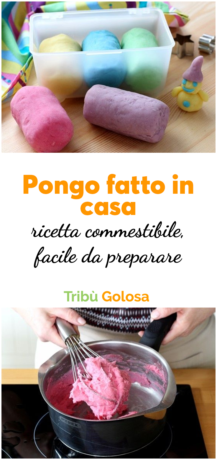 E' una ricetta facile e veloce da preparare. La pasta da modellare che si ottiene ha la stessa consistenza del pongo che si trova in commercio, ma con il vantaggio di essere commestibile.