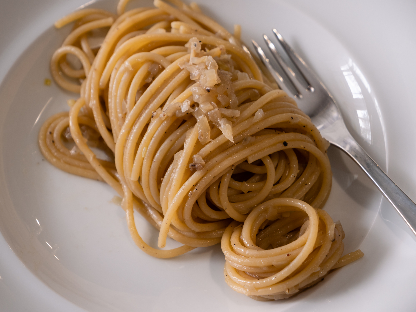 Cuocere a fuoco molto basso e coprendo la casseruola. Mescolate spesso. Quando la cipolla sarà dorata e traslucida spegnere il fuoco e lasciare raffreddare. Si tratta della "salsa" di saor.