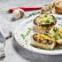 Aggiungete 1 fettina di salamino su ogni fungo e ricoprite di nuovo con l'Emmental.