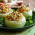 Mettetele in una pentola con acqua salata per 10 minuti per ammorbidirle. Poi scolatele e togliete il centro con un cucchiaio. Mettete da parte, lo aggiungeremo al ripieno.