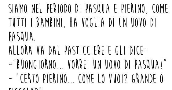Pierino e l'uovo di Pasqua Redattore Tribù Golosa, 01/04/2015 Tribù Golosa 98 condivisioni Condividi su Facebook Twitta Pin it Share on WhatsApp Condividi su G+ Scopri gli altri articoli della Tribù! la minestra di verdure I giovani sposi Un marito geloso Commenta questo articolo
