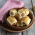Adagiare i rotolini sulla placca del forno, distanziati l'uno dall'altro. Spennellarli con il tuorlo d'uovo e fare cuocere in forno a 180° per 30 minuti circa.