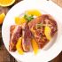Disporre la carne in una pirofila e bagnarla con lo sciroppo d'arancia.