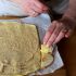 Preriscaldate il forno a 180°. Tagliate la mela a fettine fine. Mescolate in una ciotola l'uvetta, la farina di mandorle, lo zucchero di canna, la farina e la cannella. Stendete il rotolo di pasta sfoglia e aggiungeteci le mele al centro. Con un coltello appuntito, tagliate la pasta su ogni lato delle mele. Fate dei tagli sulla superficie, distanziati di 2 cm l'uno dall'altro. Iniziate ad intrecciare la pasta partendo dalle estremità e portandole verso il centro, accavallando le bande di pasta.