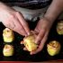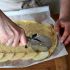Spennellate con un tuorlo d'uovo. Infornate per 35 minuti a 180°. Spolverare con zucchero a velo e versate un po' di caramello liquido per decorare.