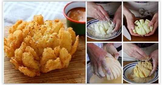 Ecco la ricetta passo passo per preparare questo divertente fiore di cipolla croccante per l'aperitivo!