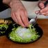 Grattugiate la carota alla julienne e disponetene un po' in ogni piatto. Fate lo stesso con il cetriolo, quindi unite qualche foglia di lattuga spezzettata con le mani, qualche filetto di erba cipollina e i nems tagliati a pezzetti.