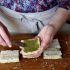 Spalmare il pesto su ogni rettangolo. Nel frattempo far bollire gli asparagi verdi per qualche minuto, e scolarli ancora croccanti.