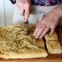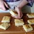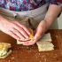 Incidere la pasta a metà nel senso della larghezza, creando due mezzelune, quindi ricavare circa 12 rettangoli.