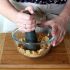 Preriscaldate il forno a 180°. Tagliate la mela a fettine fine. Mescolate in una ciotola l'uvetta, la farina di mandorle, lo zucchero di canna, la farina e la cannella. Stendete il rotolo di pasta sfoglia e aggiungeteci le mele al centro. Con un coltello appuntito, tagliate la pasta su ogni lato delle mele. Fate dei tagli sulla superficie, distanziati di 2 cm l'uno dall'altro. Iniziate ad intrecciare la pasta partendo dalle estremità e portandole verso il centro, accavallando le bande di pasta.