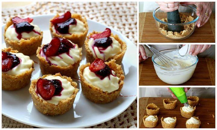 Mini-cheesecake alla ciliegia, una delizia chic senza cottura