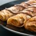 Prendete una porzione di pasta ottenuta e stendetela su una superficie infarinata. Ritagliare i bordi per ottenere un triangolo. Mettere un pezzo di formaggio al centro, pepare ed arrotolare per formare il croissant. Ripetere l'operazione fino ad esaurire la pasta. Far fondere il burro in una padella calda e far friggere i croissants (girandoli a metà della cottura), fino a che non saranno ben dorati. Servire caldi.