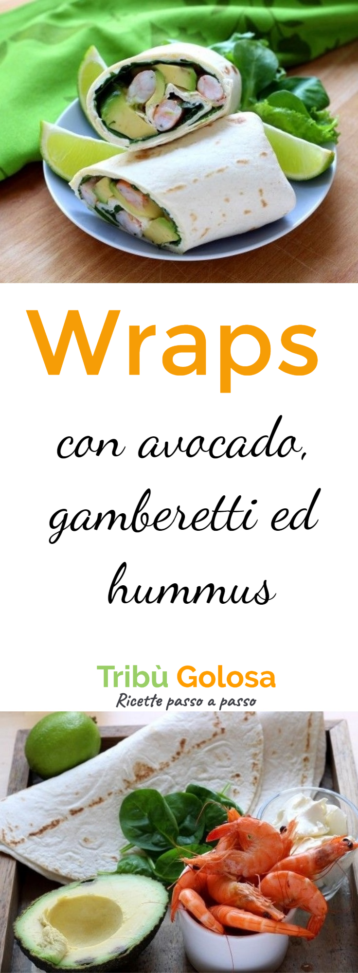 Preferite un'alternativa di pesce? Scoprite Come fare dei wraps con avocado, gamberetti ed hummus.