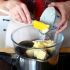 Tagliate il pane a cubetti, mettete sulla placca del forno ed infornate per 5 minuti a 180°. Schiacciate le banane in una ciotola ed unite le uova sbattute. Mescolate ed unite il latte, la cannella e la vaniglia alla crema. Unite i pezzi di pezzi di pane tostato, le gocce di cioccolato e mescolate bene.
