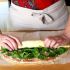 Arrotolare i rettangoli di pasta attorno ad ogni asparago, sempre lasciando libera la punta.