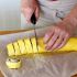 Incidere la pasta a metà nel senso della larghezza, creando due mezzelune, quindi ricavare circa 12 rettangoli.