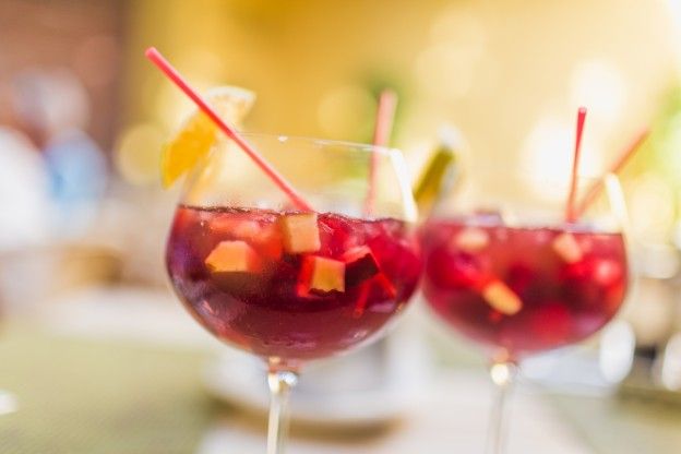 La ricetta di base della sangria è fatta con vino rosso o bianco, succo di frutta e della frutta lasciata macerare per delle ore. La sangria si degusta molto fresca per l'aperitivo.